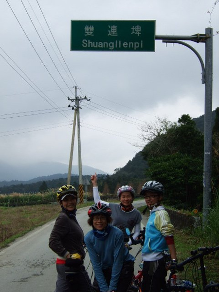 遠遠地,一塊寫著〝雙連埤〞的路標慢慢地,進入我們視線內