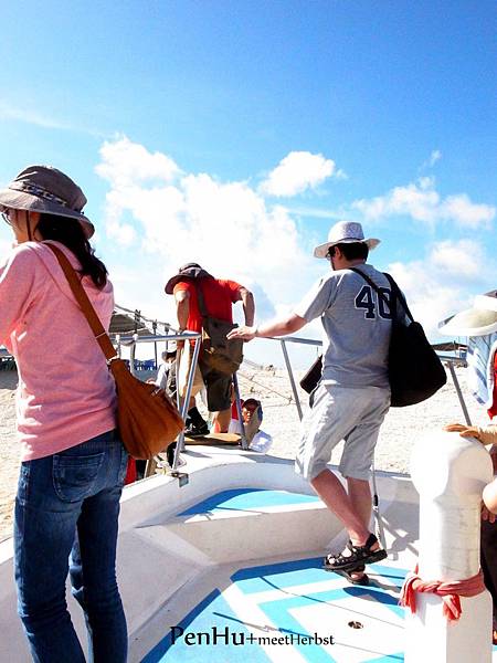 東海的一日遊行程有兩家公司提供,我們搭的是『銀海』,一人費用是1250,包含來回船票、澎澎灘水上活動(or海釣)、鳥嶼午餐、潮間帶抱墩、浮淺。行前兩人都不知道一日遊的詳細行程是什麼(我們是真的很隨性腦袋空空去的),只知道不玩水的話就參加海釣。Alice的哥哥後來加入我們一起,不知可以玩水就沒帶泳褲了,結果想玩也玩不成。總之大家此行來東海,不管是自願還是非自願,就是很悠閒地來......放空。哈。