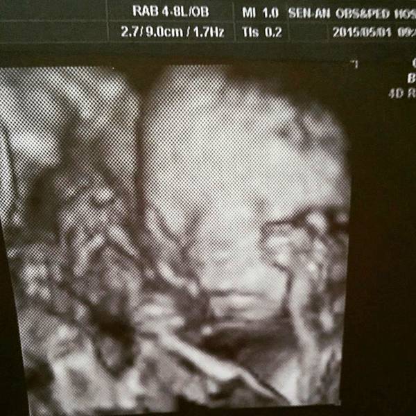 然後超音波看到很久不見的寶鼻,醫生說一切都在標準值,(說養分控制的很好耶?!) 但媽媽我體重沒什麼增加啊, 希望後期也可以控制。轉4D看時小妞兩隻手手放在臉兩側,然後右腳ㄚ也在臉旁邊......噗哧,是說胎兒都這麼軟Q的嗎? 大家看看像誰呢?不知下次會不會看到眼睛睜開咧?