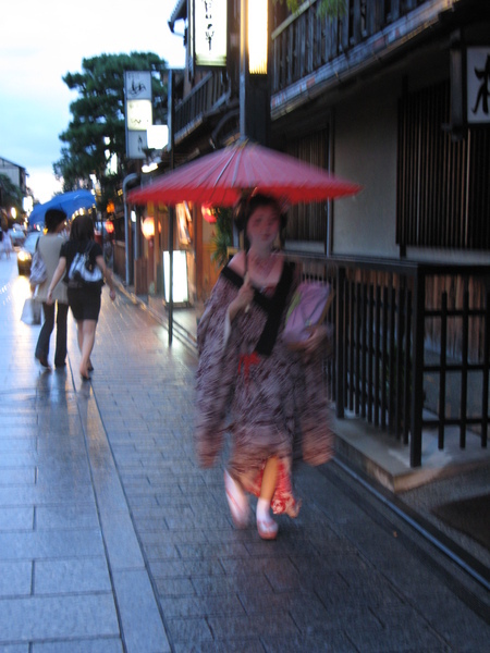 所以照片都失焦了。但撐著紅傘的藝妓真的很有味道。